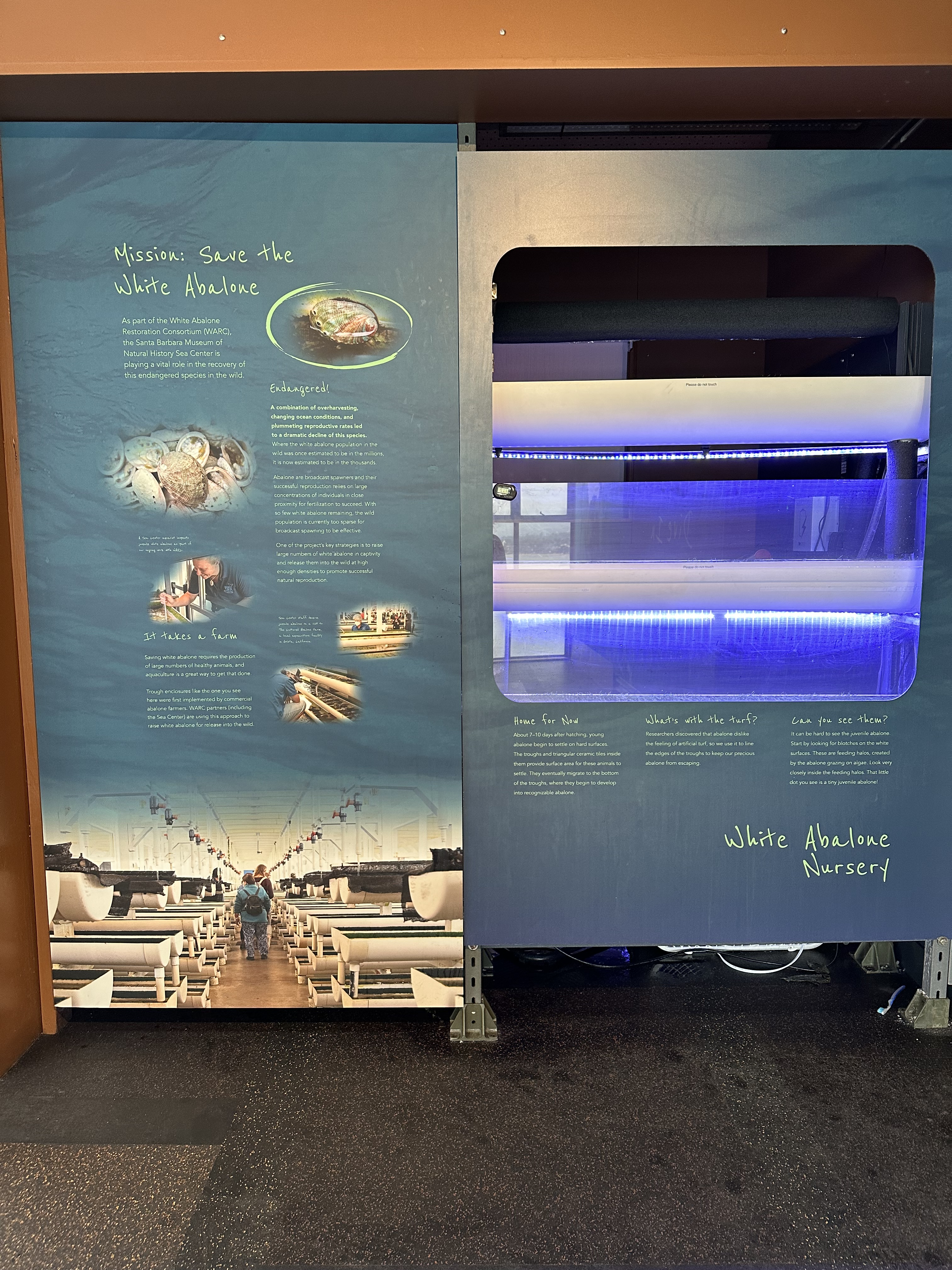 Get to know your favorite sea snails by visiting a local aquarium. White abalone are currently on display at Aquarium of the Pacific in Long Beach, Cabrillo Marine Aquarium in San Pedro, the California Science Center in Los Angeles, the Santa Barbara Museum of Natural History Sea Center in Santa Barbara, and the UC Davis Bodega Marine Lab in Bodega Bay. Visit our Partners page to learn more about where you can view white abalone. Other abalone species, such as the iconic red abalone, are also at public aquaria throughout California and beyond! These are great places for learning about the importance of abalone to coastal ecosystems, cultures, and economies.